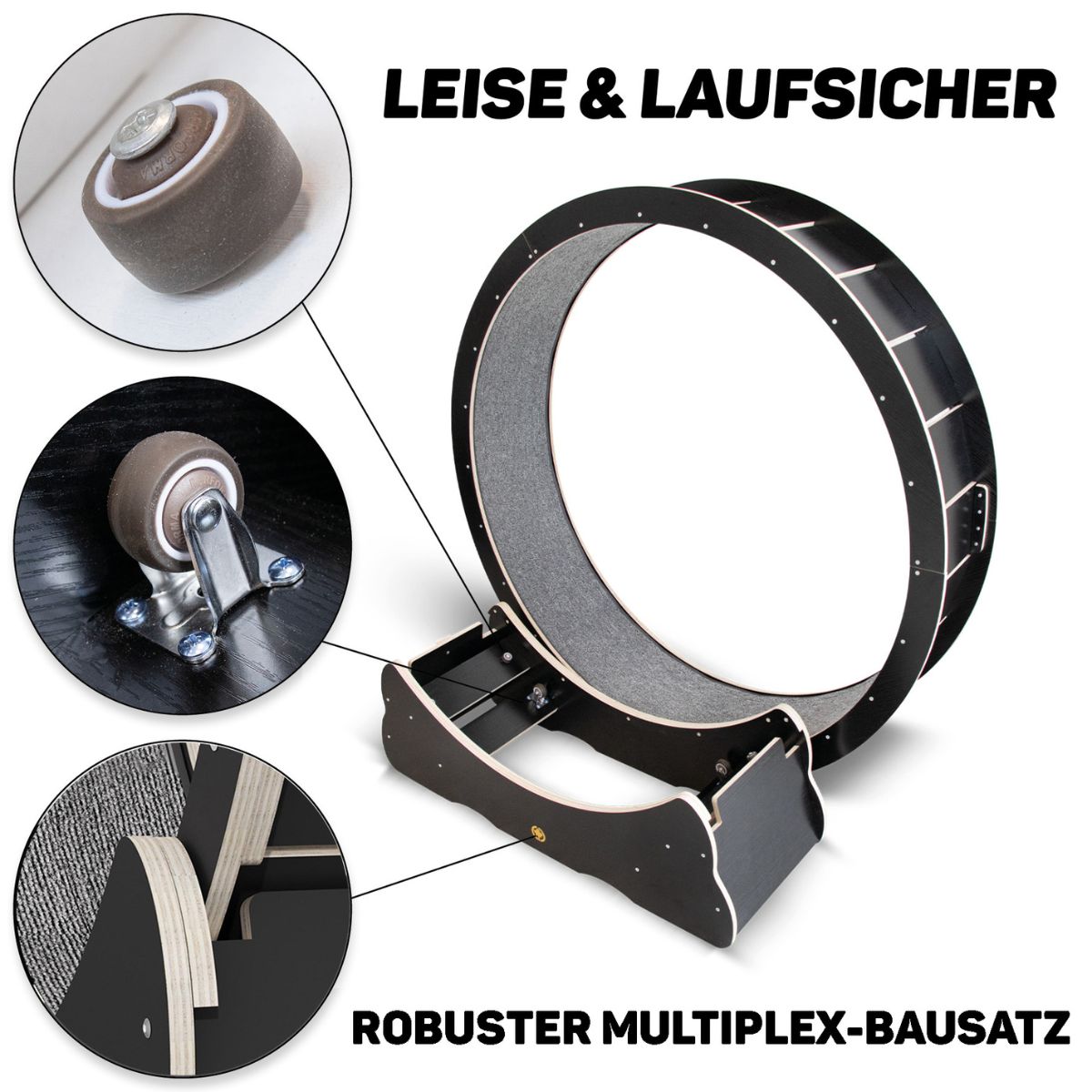 Canadian Cat vineerist kassi jooksuratas koos pehme jooksumatiga on ideaalne treenimisvahend igas vanuses ja suuruses kassidele. Jooksuratas on valmistatud kvaliteetsest vineerpuidust, olles vastupidav ja stabiilne, et kanda isegi mitme kassi raskust.
