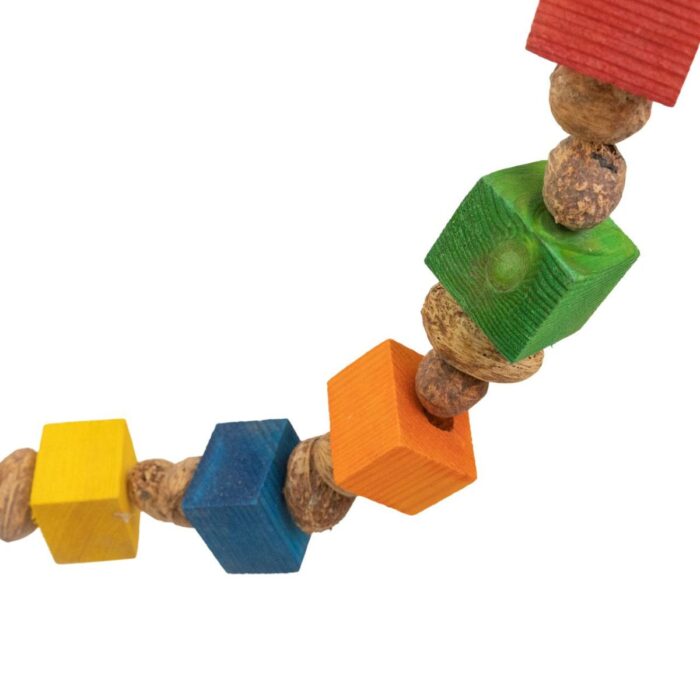 Nutty Bridge Swing on painduv ja rippuv ronimismänguasi ja kiik ühes, mis pakub papagoidele mitmekesist ronimis- ja närimistegevust. Kiik-mänguasi koosneb värvilistest puidust detailidest ja looduslikest pähklikestadest, mis muudavad mänguasja eriti põnevaks nii ronimiseks kui ka närimiseks. Liikuv konstruktsioon sobib suurepäraselt tasakaalu hoidmiseks, ronimiseks ja nokatööks. Erinevad materjalid ja kujundid pakuvad linnule vaheldust ning toetavad loomulikku käitumist.