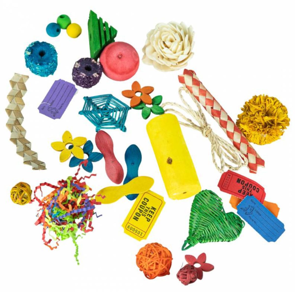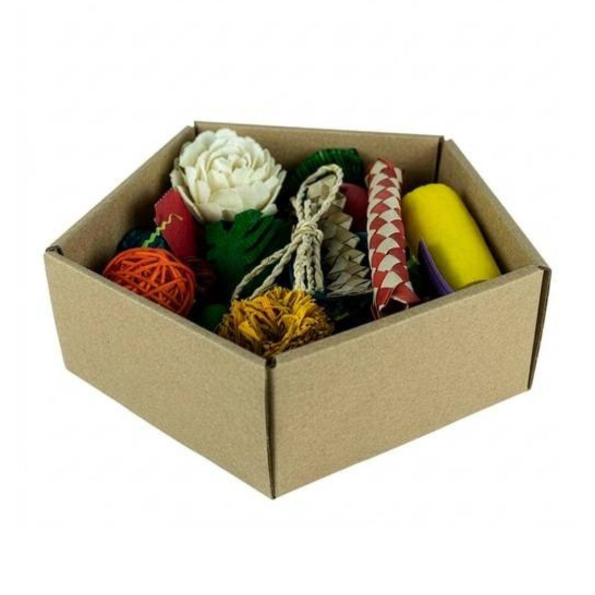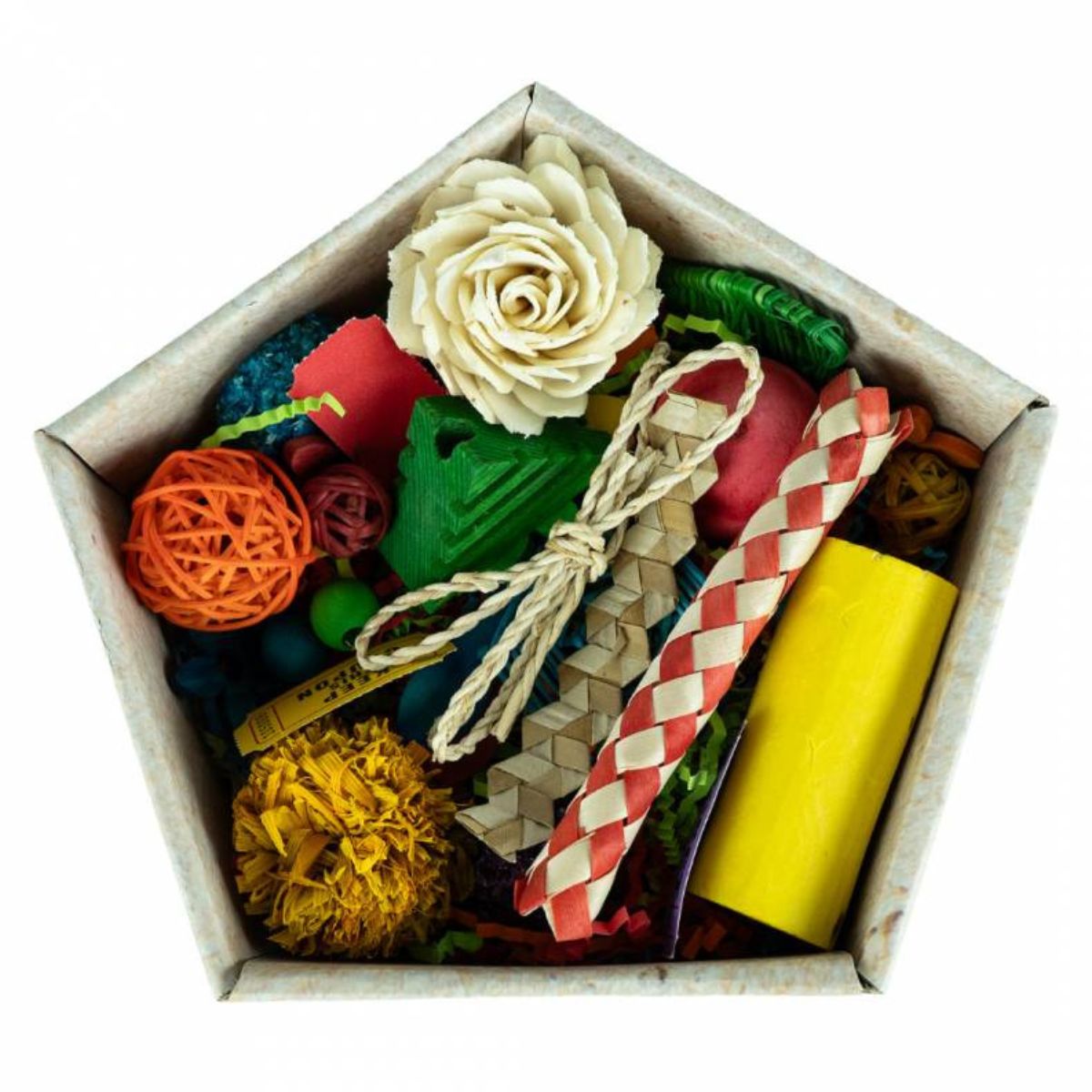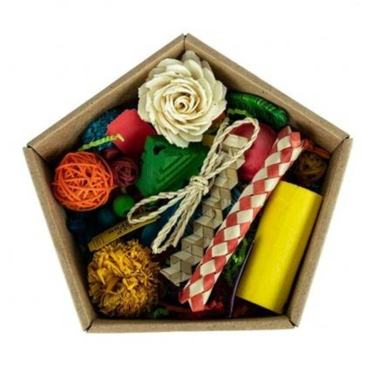 Kinkekarbi komplekt on täis värvilisi materjale, millest saab kokku panna ainulaadse papagoi mänguasja. Sobib ideaalselt kingituseks või oma lemmikuga koos meisterdamiseks.