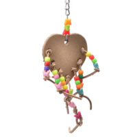 Värvikas südamekujuline puidust mänguasi, mille külge kinnitatud nahkribad värviliste plastikust helmestega. Mänguasi rikastab puuri ja pakub mitmekesist närimistegevust.