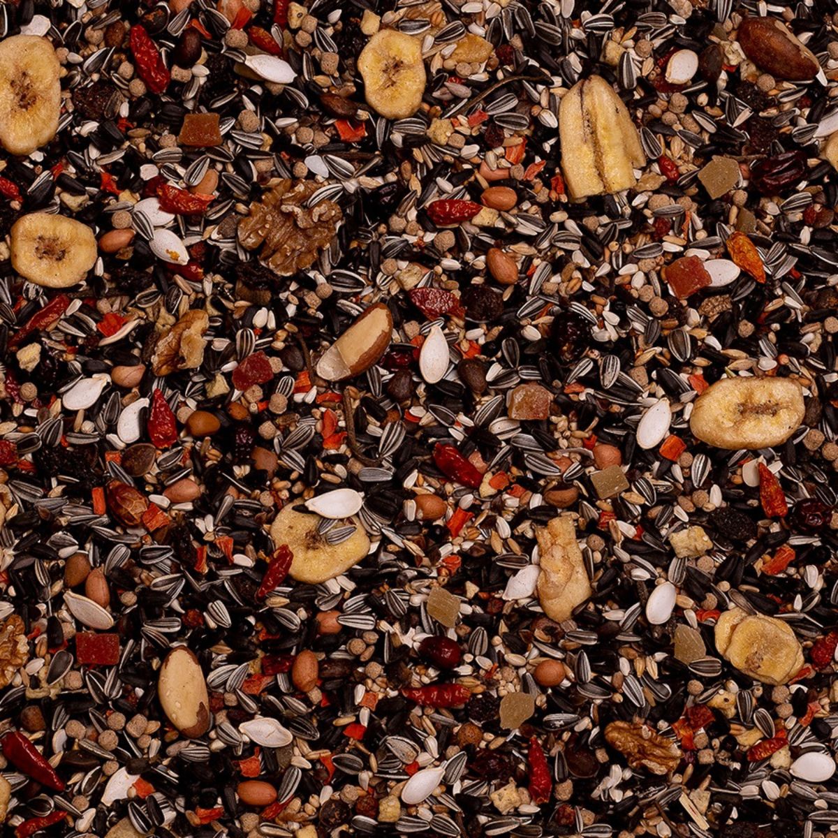 • Seemnesegu Aafrika papagoidele sisaldab ekstrudeeritud graanuleid lisavitamiinide ja mineraalainetega, linnukruusa seedimise soodustamiseks, pähkleid ja looduslikke seemneid.