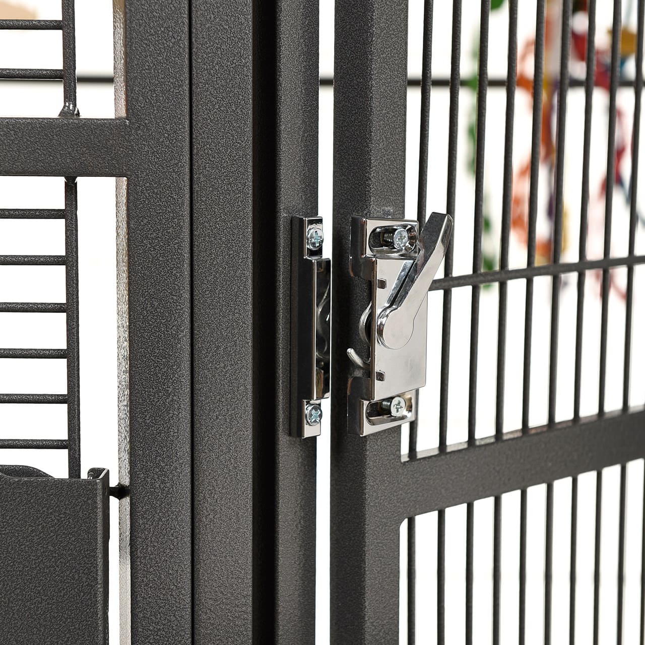 Toidu- ja jooginõud on valmistatud roostevabast terasest. Toidu- ja jooginõude mugavaks vahetamiseks asuvad puuri külgedel spetsiaalsed väljapoole avatavad väikesed uksed. Ees on suur uks ja ukse kohal väike ukseluuk, mis võimaldab lisaväljapääsu. Väikest luugiava armastavad papagoid eriti kasutada, sest see asub kõrgemal asetusel. Puuripõhjas olev rest ja allapanu sahtliosa on puhastamiseks eemaldatavad. Allosas ümber puuri on paigutatud prahiääred, mis aitavad väljalangevat puru kinni püüda. Puuri võib kasutada ka ilma prahiäärteta, kui on vajadus puuriümbruses ruumi kokku hoida. Puur on ratastel, mis